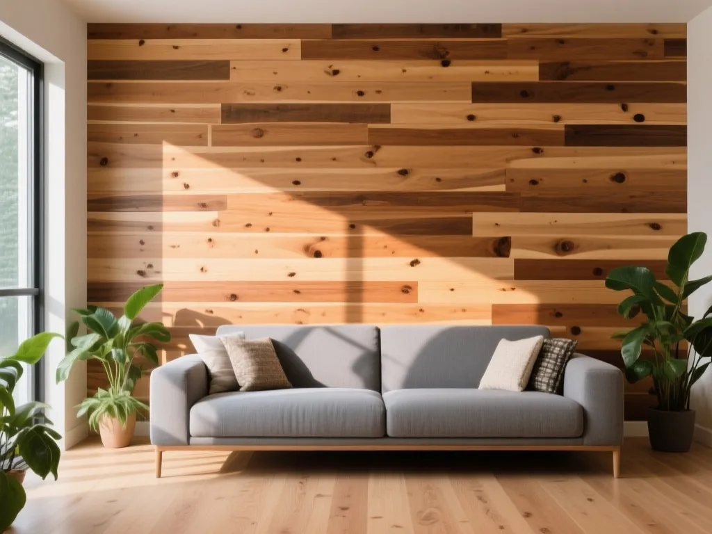 - Structure visuellement l'espace : un mur boisé crée un point d'ancrage dans une pièce