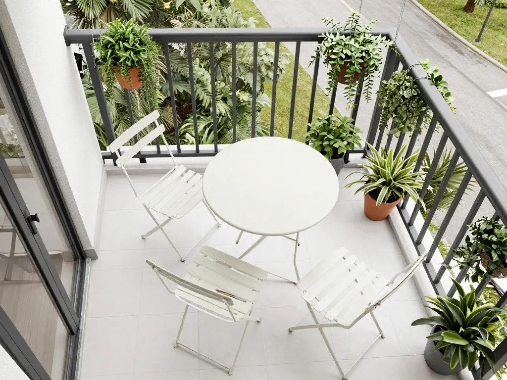 - Privilégiez le mobilier pliable ou suspendu (table de balcon rabattable) pour libérer le sol hors des repas