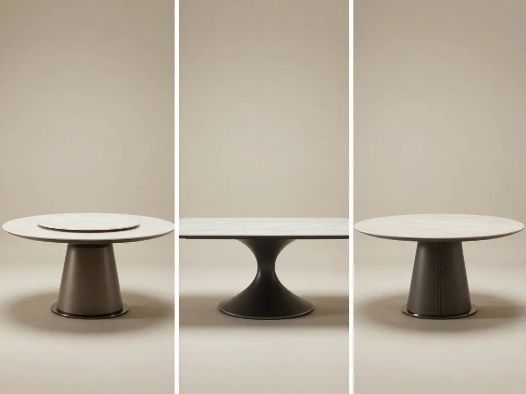 Table ronde Idéale pour petits espaces. Sans angles aigus, elle favorise la circulation et rassure les familles avec enfants.