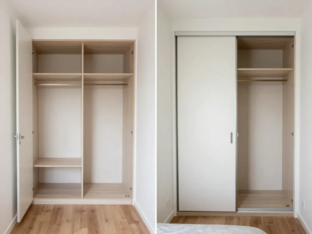Dressing fermé : Les portes coulissantes économisent l'espace de circulation, mais le caisson lui-même peut paraître massif et écraser le volume dans une petite pièce.