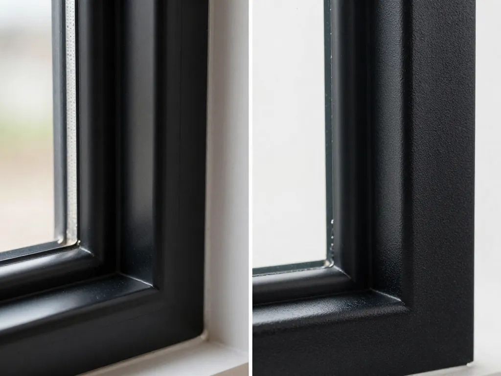 Le PVC a longtemps été problématique pour les teintes foncées. Il revient en force grâce à deux solutions : le plaxage (film acrylique collé à chaud) ou le PMMA (coque transparente coextrudée en usine). Ces options offrent une belle finition, mais l'adhérence est inférieure à celle du thermolaquage aluminium.