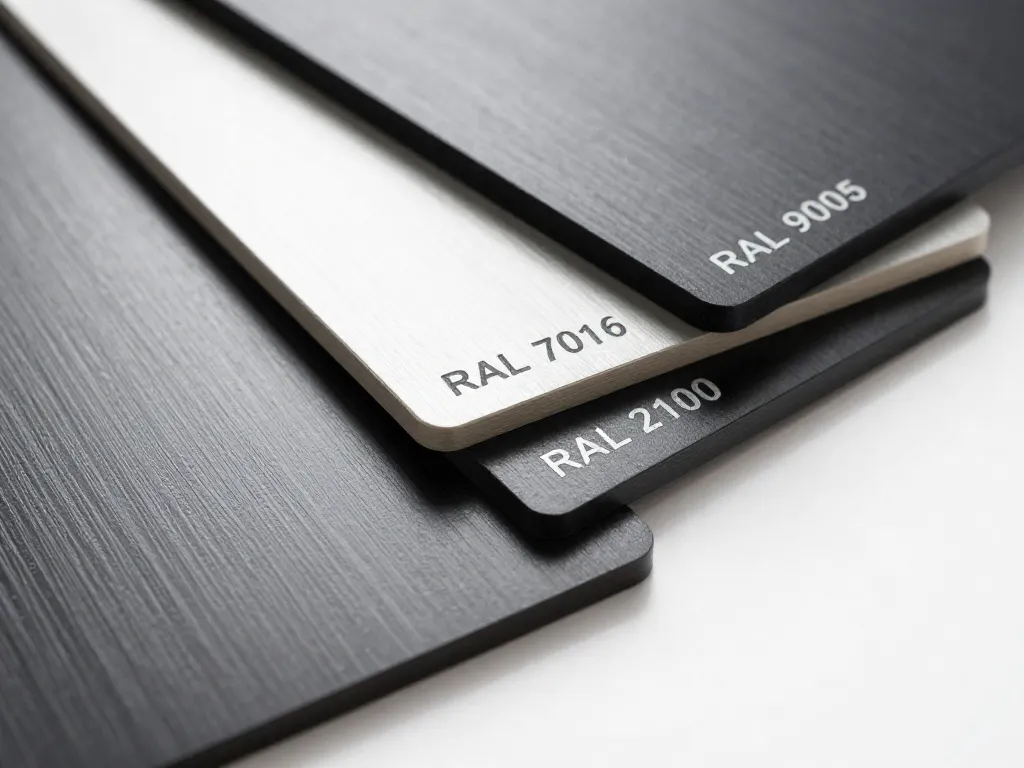 - RAL 2100 (Noir Sablé) : une finition texturée mate et luxueuse. Elle masque les micro-rayures et facilite l'entretien.