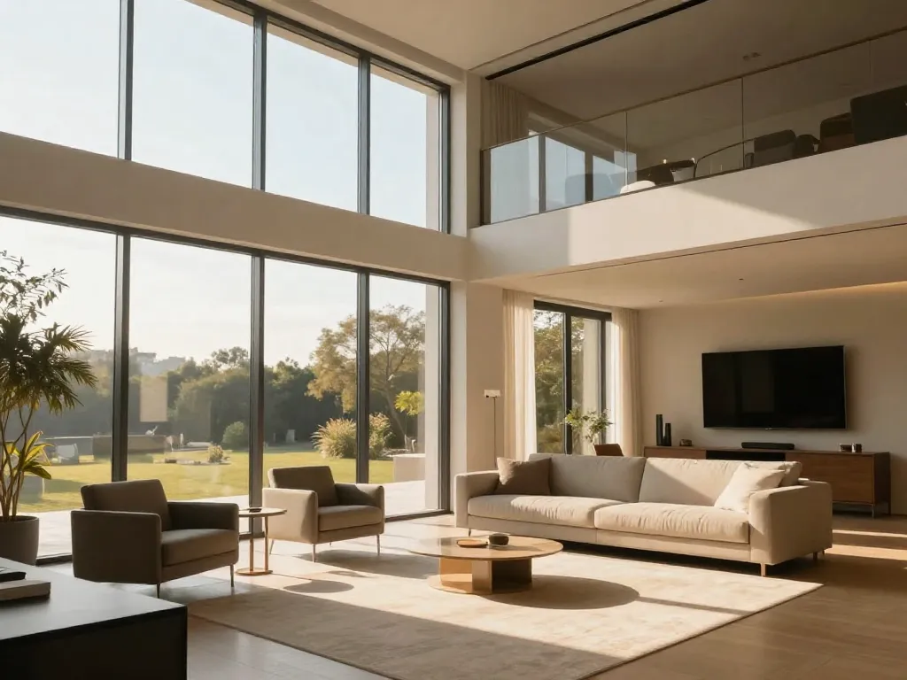 Placez écrans et espaces de travail perpendiculairement aux baies vitrées pour éliminer les reflets. Créez des zones d'ombre intérieure avec du mobilier de hauteur variable : fauteuils près de la fenêtre (pour profiter de la vue), coins lecture ou détente en retrait.