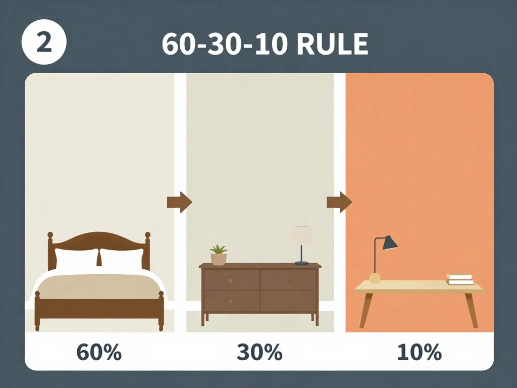 - 30% de couleur secondaire — Meubles, rideaux ou mur d'accent. Elle génère l'intérêt visuel sans surcharger.