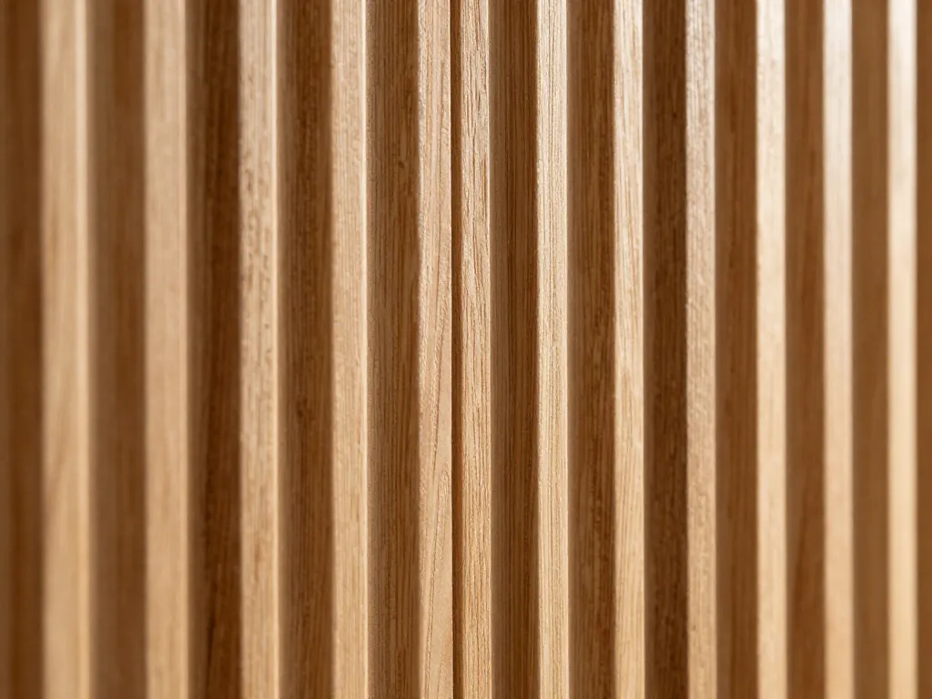 Le chêne massif ou le noyer travaillés avec des stries verticales dominent les enfilades et buffets. Ces rainures apportent du rythme et accentuent la verticalité, créant une impression de légèreté.