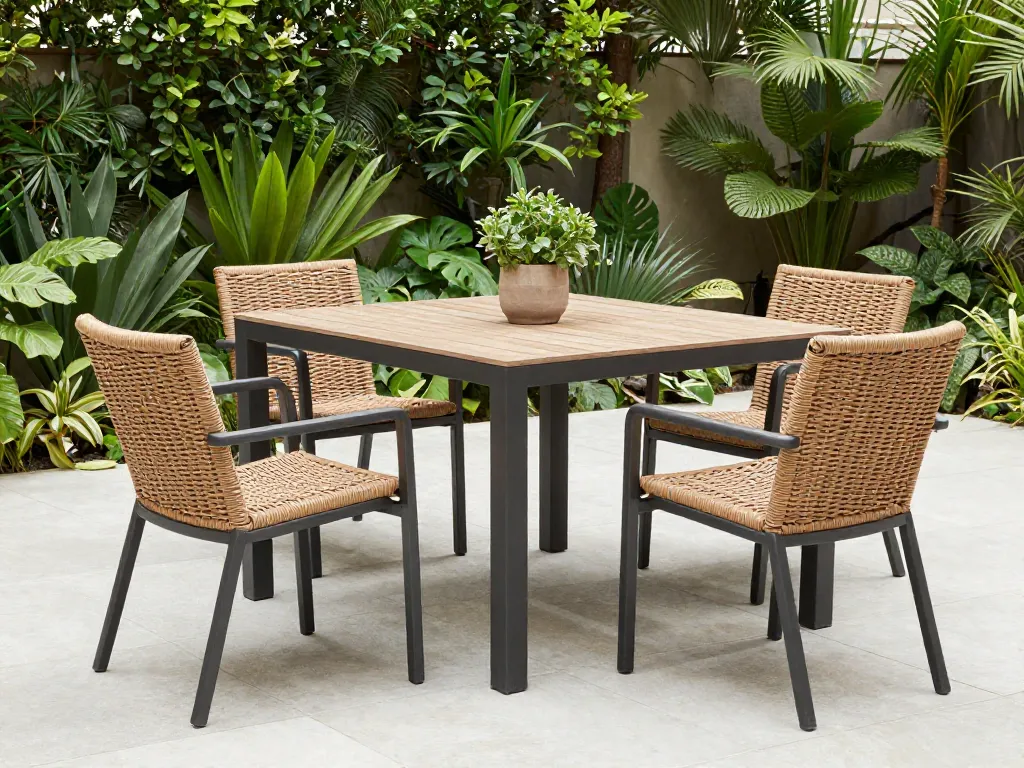Résine tressée haute densité Esthétique épurée, résistante aux UV et à l'humidité. Parfait pour créer une ambiance chaleureuse sans sacrifier la robustesse.