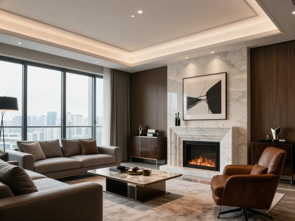 Mobilier à privilégier : Bois massif, marbre, velours premium, cuir véritable. Aucun mobilier "flatpack". Souvent du mobilier de créateur ou du sur-mesure.