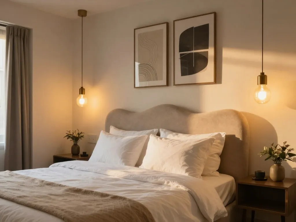 Mobilier à privilégier : Pièces de caractère, luminaires design recherché, têtes de lit travaillées. Literie de grade hôtelier (200+ fils pour le coton). On sacrifie intentionnellement l'espace de rangement (inutile pour 3 jours) pour maximiser la circulation et l'impact esthétique.