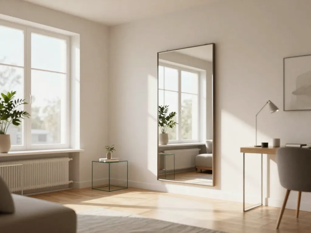 Miroirs positionnés stratégiquement Placez-les face à une fenêtre pour doubler la luminosité et la profondeur perceptive. Un miroir en hauteur agrandit aussi les plafonds.