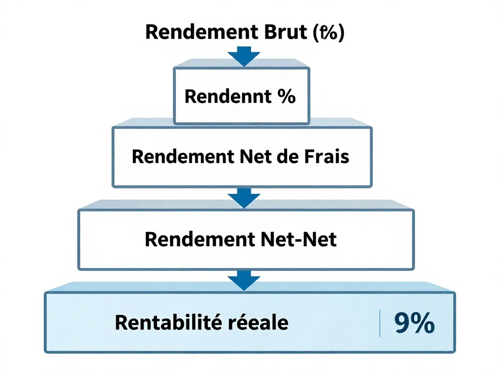 Rendement Net-Net (Net de Fiscalité) Il intègre l'impact de l'impôt sur le revenu et des prélèvements sociaux (CSG/CRDS). C'est souvent ici que les investisseurs découvrent le véritable poids de la fiscalité française.