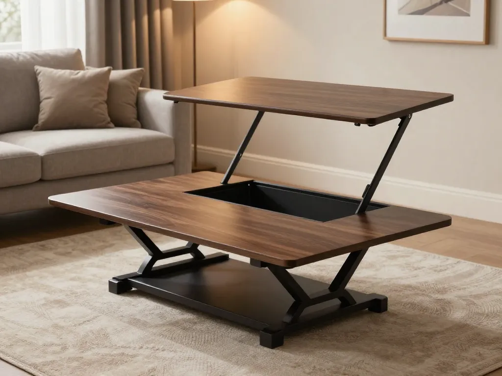 La solution hybride par excellence pour ceux qui ne veulent pas choisir entre un salon et une salle à manger. Grâce à un système de pistons hydrauliques ou à gaz, la table monte à hauteur standard (75 cm) et son plateau se déplie souvent pour doubler la surface.