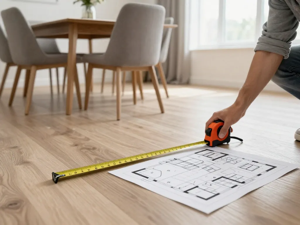 La vérification finale : avant d'acheter, matérialisez l'encombrement de la table au sol avec du ruban adhésif. Tirez les chaises comme vous le feriez réellement. Circulez autour. C'est la seule méthode qui ne trompe pas.