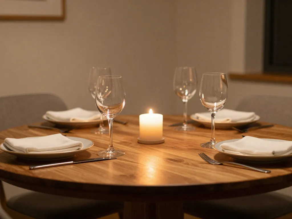 Sur une table rectangulaire, ce calcul est linéaire et transparent. Sur une ronde, la circonférence rétrécit vers le centre. Si le diamètre est inférieur à 120 cm pour 4 personnes, les jambes des convives s'entrechoquent et les assiettes se frôlent. C'est inconfortable rapidement.
