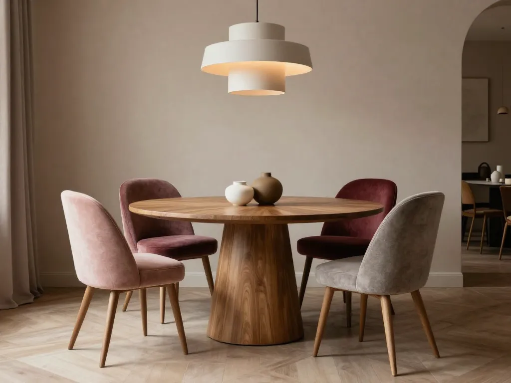 - Chaises en velours foncé (bleu nuit, noir) : Accumulent la poussière et marquent les fibres plus visiblement au fil du temps.
