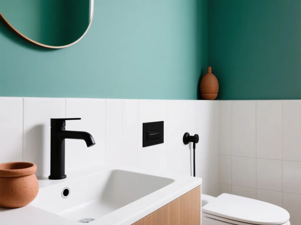 Sur un mur de faïences blanches, peignez le reste en céladon. Ajoutez un panier en vanille, des serviettes en éponge épaisse couleur brique, et un robinet noir mat. Vous venez de créer un spa à 300 euros au lieu de 15 000.